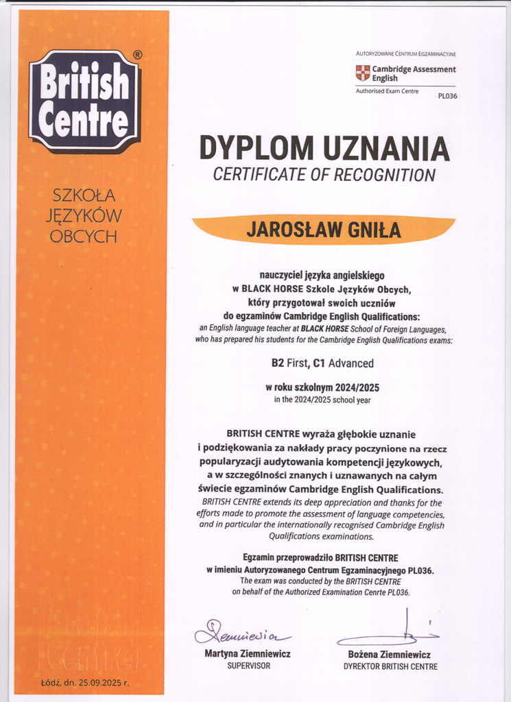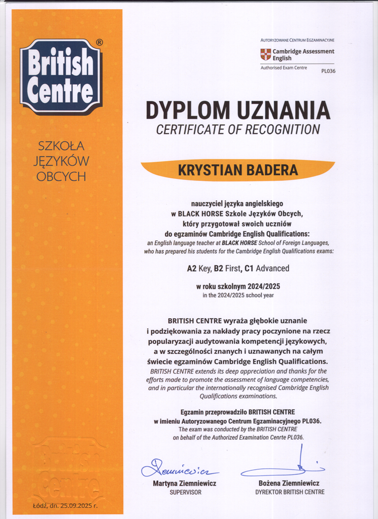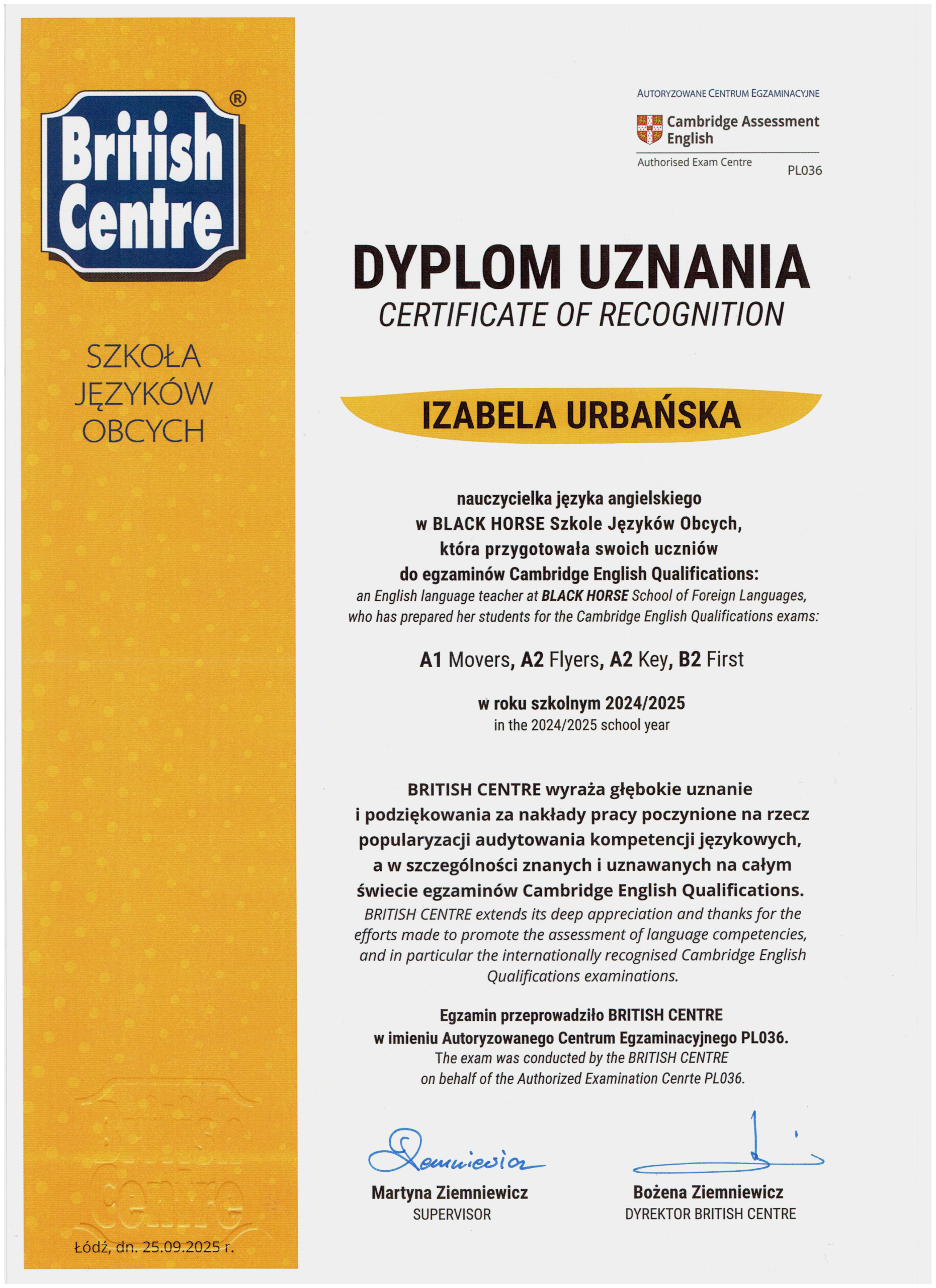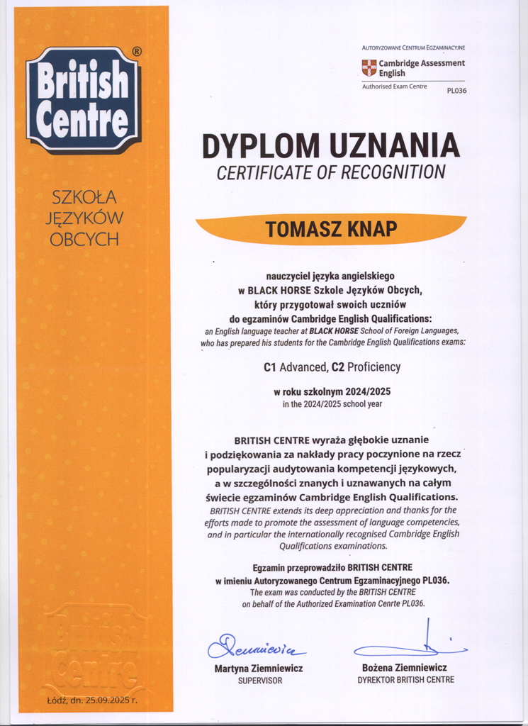 Kadra lektorska Black Horse specjalizuje się w przygotowaniu uczniów do egzaminów Cambridge English na wszystkich poziomach.